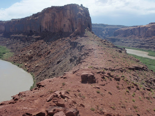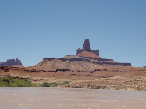 As we expected, the river was moving swiftly--at about 4-5 miles per hour in the main current, so we were able to make it to mile fifteen, the beginning of Labyrinth Canyon, quite early in the afternoon. A famous formation, Dellenbaugh's butte, named for the 17-year-old artist on the Powell exploratory expedition of this river, roughly marks the beginning of Labyrinth Canyon: