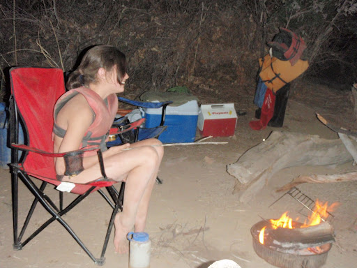 Red ants were also a potential problem at this site, but, though there were millions roaming about, they seemed completely disinterested in bothering us loitering humans. Nobody felt much like hiking that evening, so we basically ate our remaining dinner food (spaghetti again--no cheese this time since I'd let the Parmesan get soaked by river water--don't ask), read, and hung out by the cool riverside. Eventually, after what seemed an eternity, the sun passed below the canyon walls and we had some much-coveted shade. Shortly thereafter, we were all asleep.