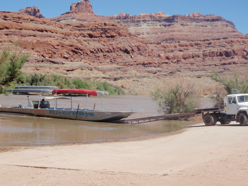 We began the morning of June third in Fruita, Colorado at the home of my children's maternal grandmother, Connie. We headed out at six in the morning for the 90-minute drive to Tex's Riverways in Moab, car stuffed with a week's worth of food, camping gear, and a single folding kayak. Tex would be providing our shuttle service, driving us to the put-in, storing the car while we were on the river, and picking us up via jetboat just below the confluence. When we arrived at Tex's, we completed a little paperwork, picked up some rental gear (toilet, well-insulated cooler, two 6-gallon water containers, and one canoe) transferred our gear to their shuttle van, and headed north to the put-in.