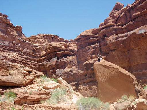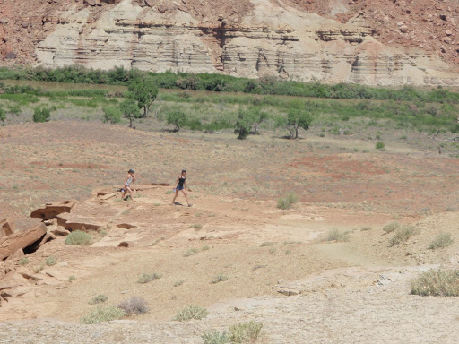 About a half-mile up the canyon it opened up into a large park that afforded views up to the White Rim above. The girls found a fabulous perch on which to rest: