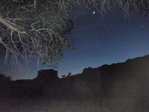 Once again I retired to the tent to read and left them to enjoy a wood fire and conversation. Just before heading to bed, I snapped this picture of the gorgeous desert night sky: